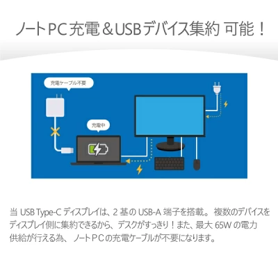 DisplayPort Altモードをサポートしており、最大65WのUSB Power Deliveryに対応するため、ノートPCを充電しながら映像出力が可能です。