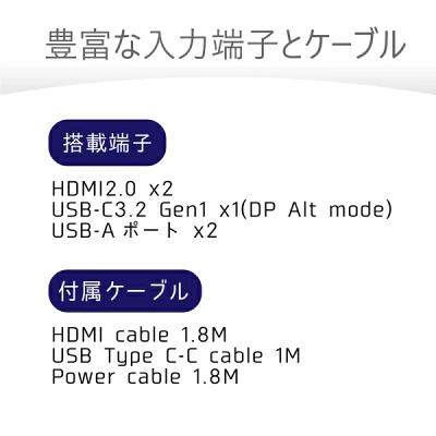 | 接続 | HDMI×2、USB-C、USB オーディオ出力 |
