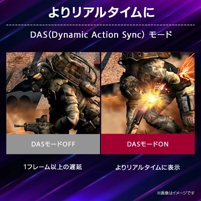 DAS(Dynamic Action Sync)モード有効時は、映像処理が高速化されるため、遅延を最小限に抑えられます。