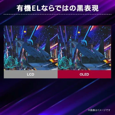 応答速度は超高速の0.03msで、最大リフレッシュレートは240Hzに対応します。色域はDCI-P3 98.5%で、DisplayHDR True Black 400認証を取得し、鮮烈なビジュアル表現が可能です。