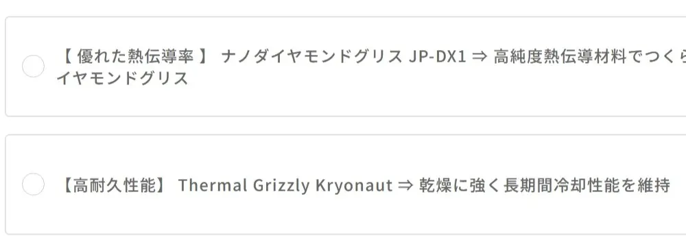 PC購入時であれば、2000円前後の追加費用で高性能グリスへカスタマイズできるため、冷却性能を重視する方はぜひ検討してみてください。