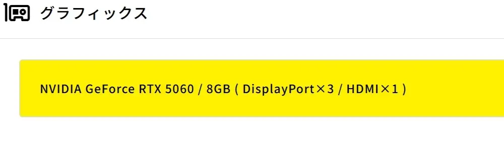 搭載メモリは高速なDDR5の16GB、ストレージは大容量の1TB SSDを備えており、ゲーム用途には必要十分な構成となっています。