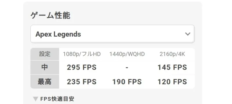 ドスパラの公式サイトでは、本モデルにおける代表的なゲームのフレームレート目安が公開されています。