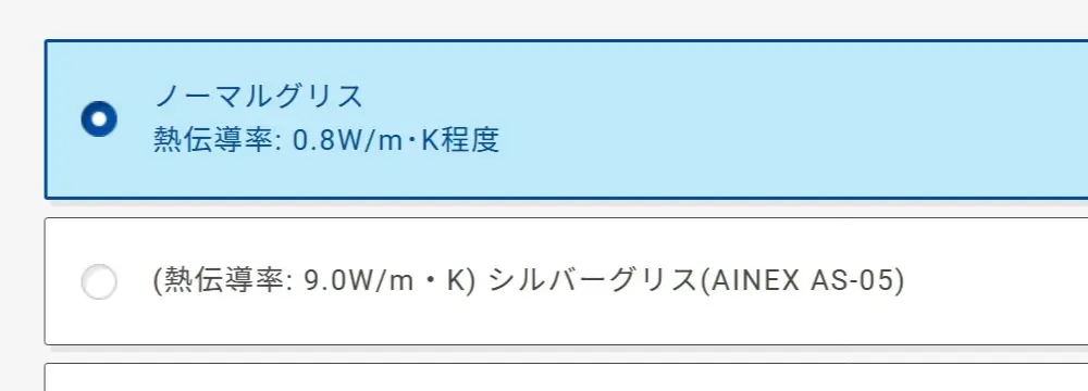 PC購入時であれば、2000円前後の追加でグリスをアップグレードできるため、予算に余裕があればぜひ検討してみてください。
