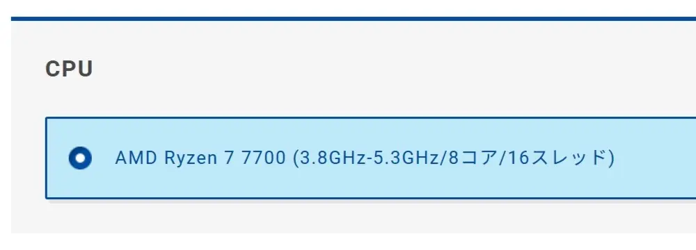その高性能ぶりから、多くのユーザーに支持されている人気CPUですが、Ryzen 7 7700構成との価格差は7万円と大きいため、何よりスペック重視の方におすすめです。