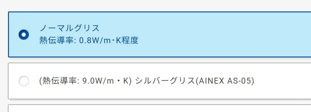 PCを購入するタイミングであれば、2000円前後の追加費用でグリスの変更が可能なので、予算が許すなら検討してみる価値は十分にあります。