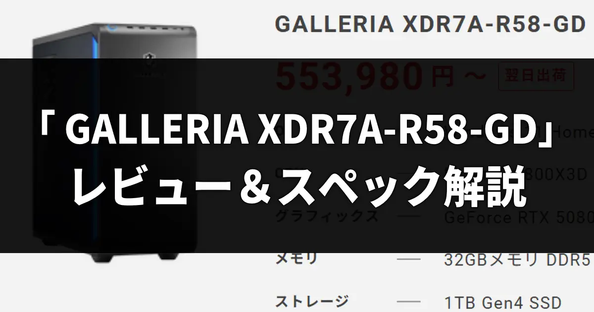 | GALLERIA XDR7A-R58-GD(9800X3D) | Ryzen 7 9800X3D / RTX 5080 | 553,980円 | いちばんバランスよく選びたい人 |