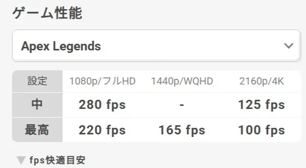 ただし、ここで大事なのは、このPCはWQHDや4Kを本気で狙うためのモデルではないという点です。ApexやVALORANT、FortniteのようなフルHD中心の使い方なら相性は良いですが、解像度を上げて長く使いたいなら上位GPUモデルのほうが満足しやすいです。