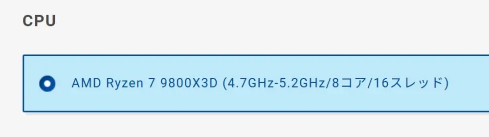 Ryzen 7 9800X3Dは、3D V-Cache技術を採用したゲーミング特化型プロセッサで、96MBという大容量L3キャッシュを搭載しています。
