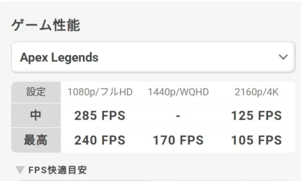 まず、「Apex Legends」のような比較的軽めのeスポーツタイトルでは、200fpsを超える滑らかな動作が想定されており、快適なプレイ環境を実現できます。