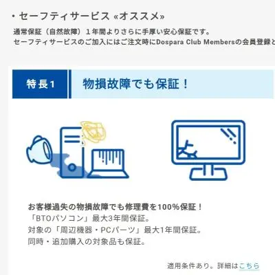 ノートPCは携帯する場面が多く、その分事故のリスクも高まるため、この手厚いサポートは大きな魅力です。
