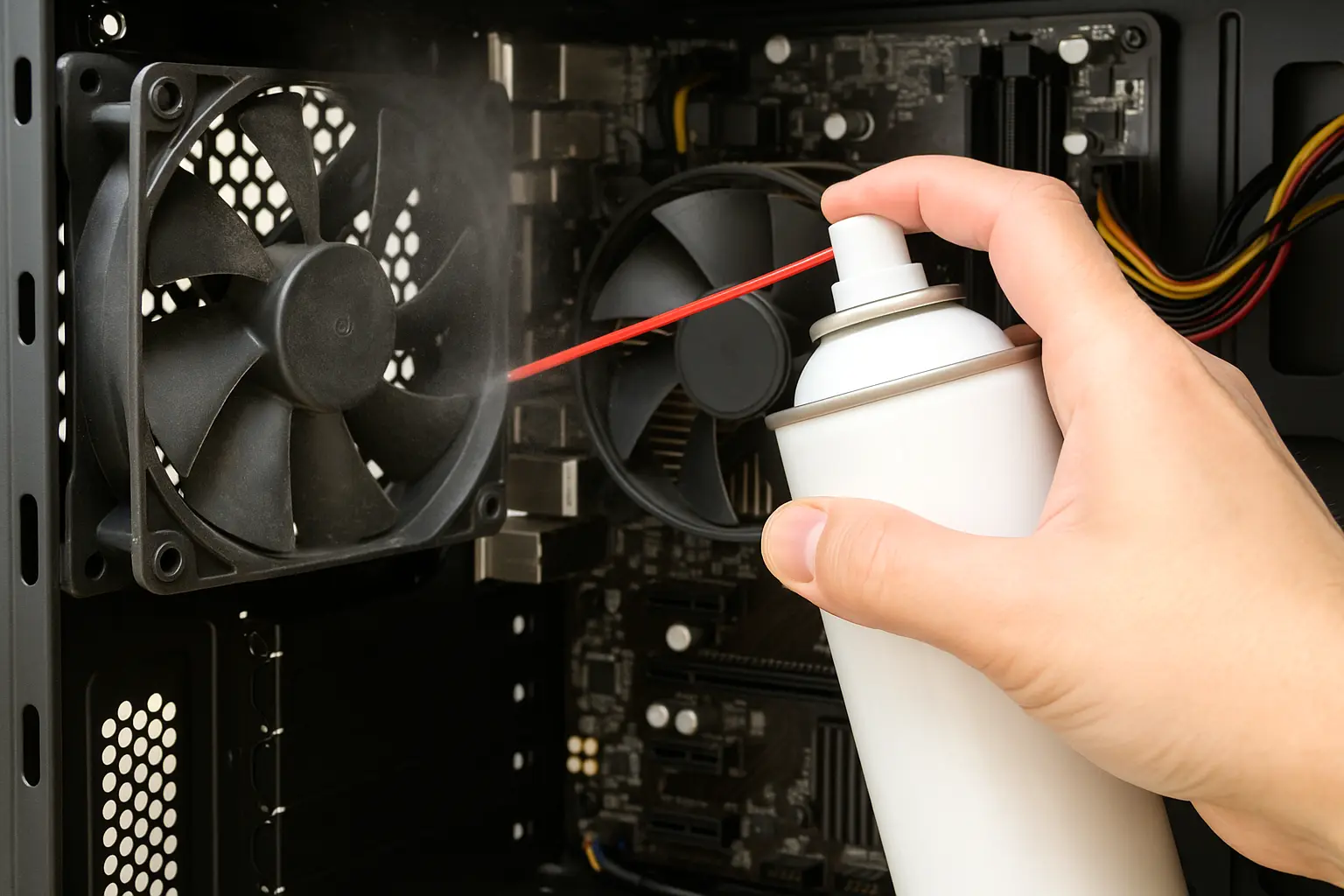 たとえば、エアダスターで吸気口や排気口にたまったホコリを月に1回吹き飛ばすだけで、PC内部の温度上昇を防げます。