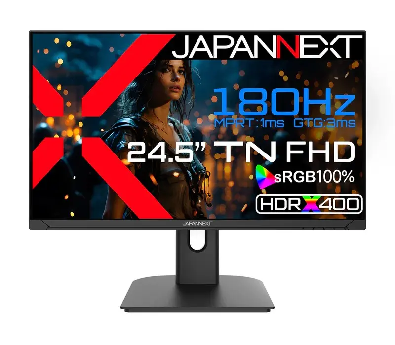 「JN-245GT180FHDR」は、1ms応答速度、最大180Hzリフレッシュレートを搭載した勝つためのモニターです。