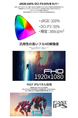 液晶には「Fast IPSパネル」を採用しており、視野角が広く色再現性にも優れています。