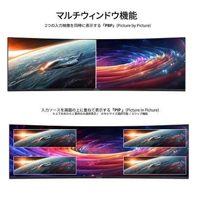 「PIP(Picture in Picture)」や「PBP(Picture by Picture)」に対応しており、複数の入力を同時に表示できます。