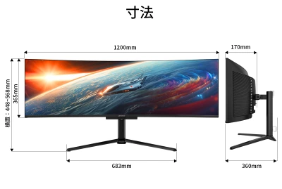 スタンド付きサイズは、幅1200×高448~568×奥行360mm。