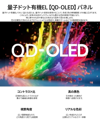 パネルはQD-OLEDで、量子ドット技術を採用した有機ELになります。