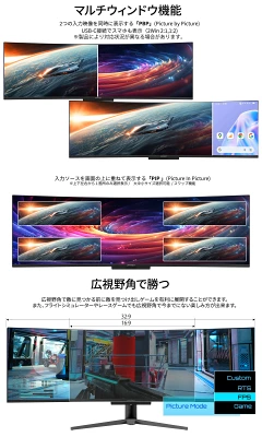 PBP(Picture by Picture)、PIP(Picture in Picture)のマルチウィンドウ機能を備えます。