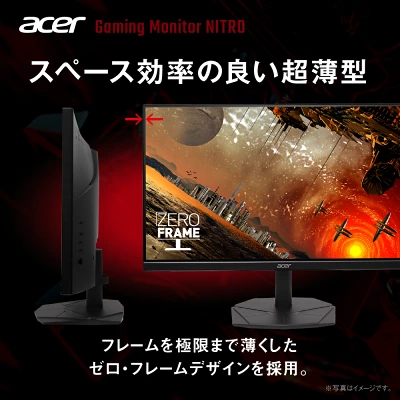 Acer「KG251QZ1bmiipx」は、24.5インチのVAパネルを採用したゲーミングモニターです。最大の特徴は、極限までフレームをそぎ落とした「ゼロ・フレームデザイン」。