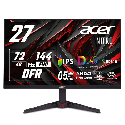 Acer「KG272KL1bmiipx」は、4K解像度とフルHD/144Hzの切り替えが可能なユニークなゲーミングモニターです。