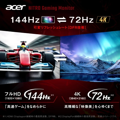 DFR技術で4K/72HzとFHD/144Hzを切替可能