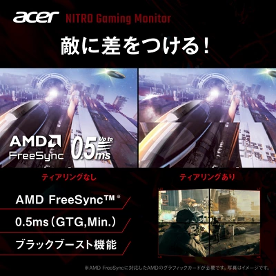 さらにAMD FreeSyncに対応しているため、映像のカクつきやティアリングを軽減し、なめらかなゲーム体験をサポートします。
