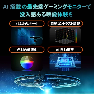 パネルはIPSで、色彩豊かな表現力と1msの高速応答速度を両立。また、DCI-P3 95%の広色域およびDisplayHDR 400をサポートするため、よりリアルなビジュアル体験が可能です。