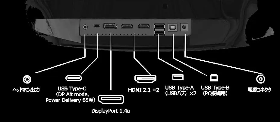 | 接続 | HDMI×2、DP、USB Type-C USB、ヘッドホン出力 |