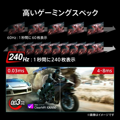 - 0.03ms応答速度、240Hzリフレッシュレート