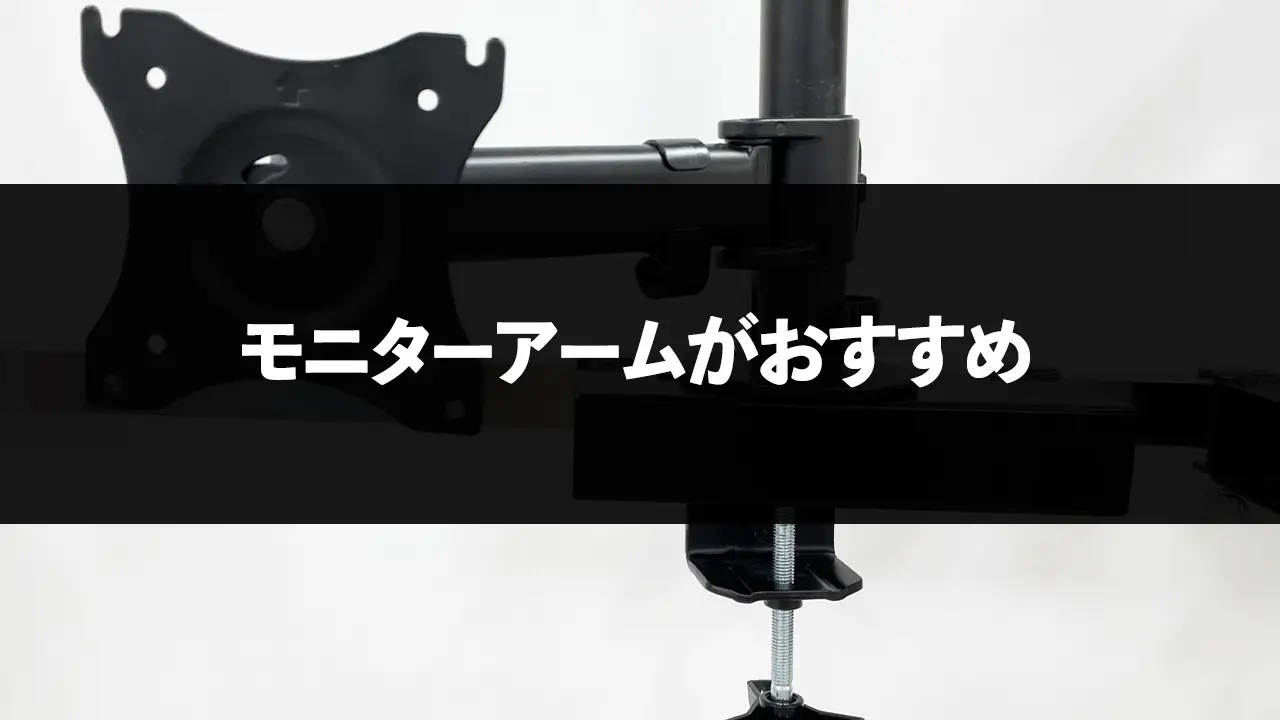 異なる製品を並べてマルチディスプレイにする場合、モニターアームの使用を強くおすすめします。