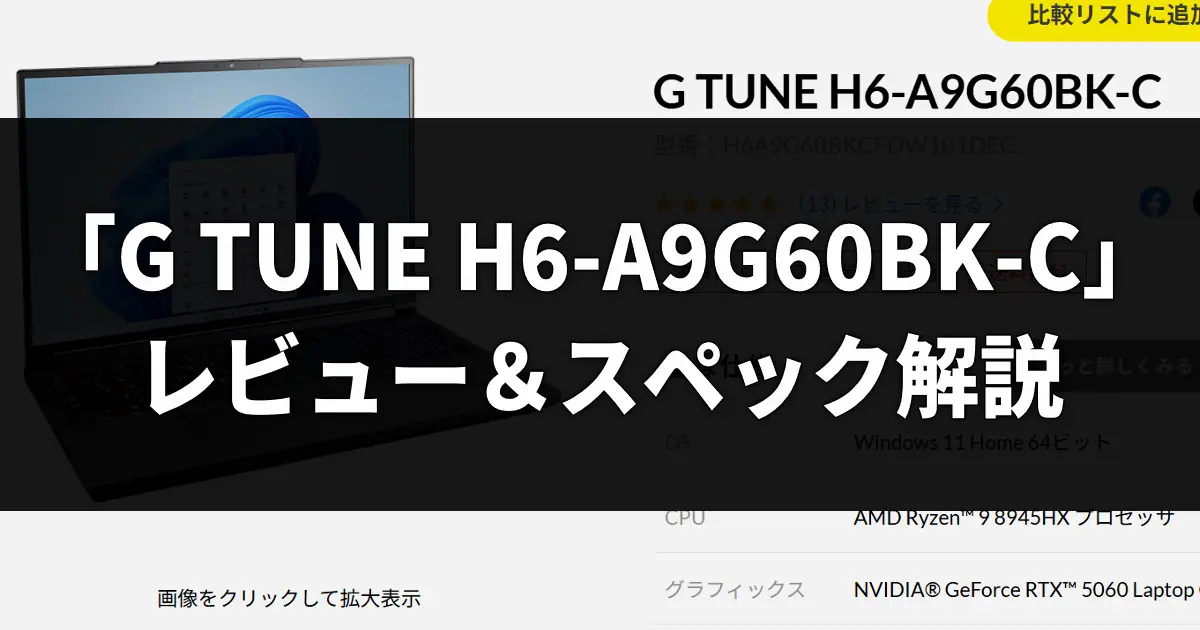 G TUNE H6-A9G60BK-C レビュー|Ryzen 9×300Hzでゲームも動画編集もこなす高性能ノート