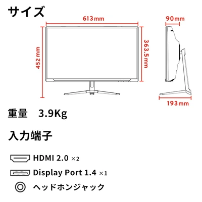 | 接続 | HDMI×2、DP イヤホンジャック |