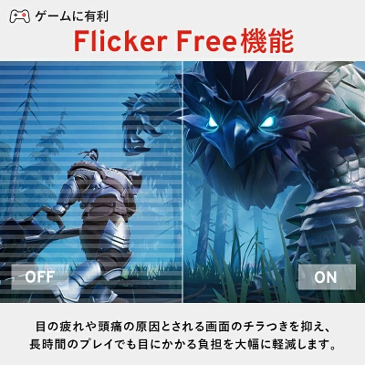 Flicker FreeやLow Blue Light機能を搭載し、長時間のゲームや作業でも目に優しく、快適に使い続けられます。