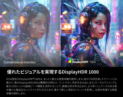 DisplayHDR 1000の認証も取得しており、光と影のコントラストが非常に豊か。映画やゲームの臨場感が一気に高まります。