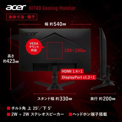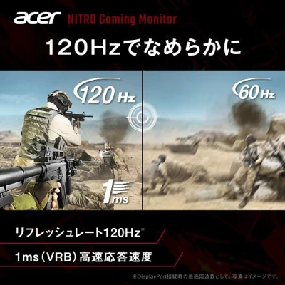 Acer「QG241YGbmipx」は、手頃な価格ながら、IPSパネル・120Hzリフレッシュレート・1ms(VRB)と、ゲーミングに必要な性能をバッチリ押さえた高コスパモニターです。