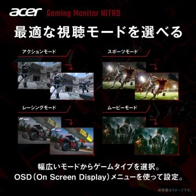 また、画面モードも複数用意されており、アクション、レーシング、スポーツ、ムービーなど、用途に合わせて色味やコントラストを調整できます。