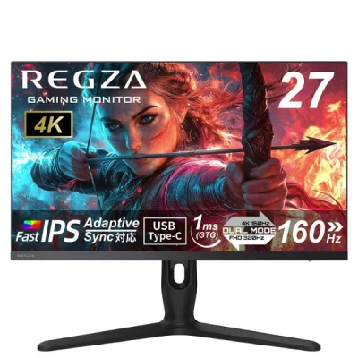 REGZA RM-G277Rは、4K 160HzとフルHD 320Hzを切り替えられる“デュアルモード”を備えた27インチゲーミングモニターです。