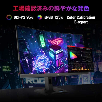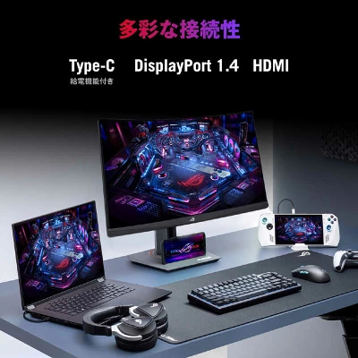| 主な付属品 | スタンド一式、DisplayPortケーブル 電源コード、クイックスタートガイド ROGポーチ、ROGステッカー、保証書 |