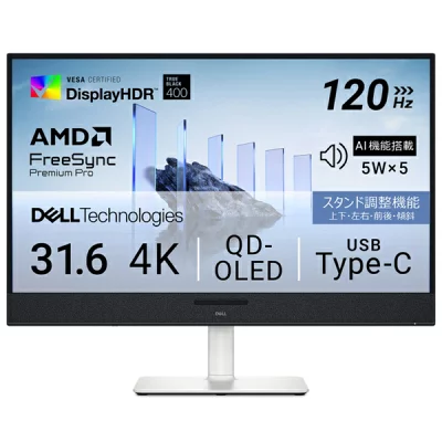 Dell「S3225QC」は、31.6インチのQD-OLEDパネルを搭載した4Kモニターです。