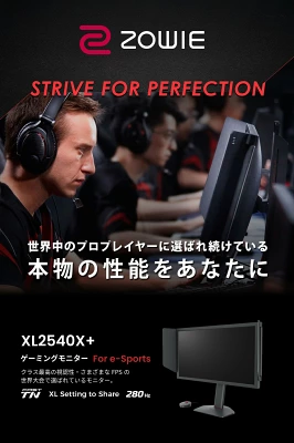 ZOWIE「XL2540X+」は、280HzリフレッシュレートとFast TNパネルを搭載した、プロ志向ゲーマー向けの特化型モニターです。