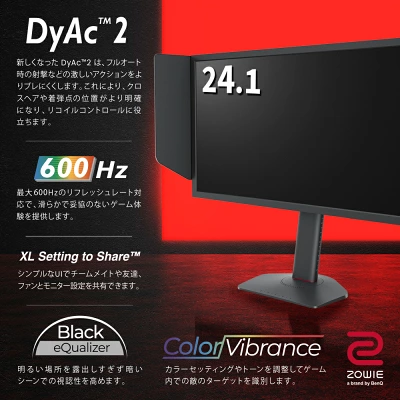 XL2586X+には、最新のDyAc 2技術(ダイナミックアキュラシーテクノロジー)が搭載されています。