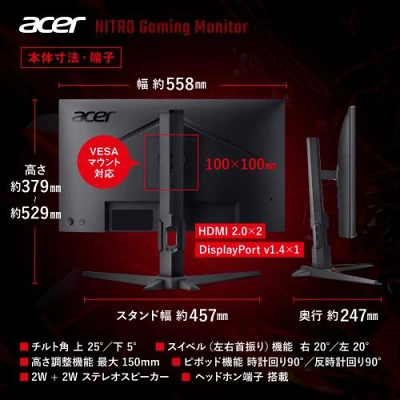 Acer「XV250QFbmiiprx」は、eスポーツやFPSにぴったりな24.5インチのフルHDゲーミングモニターです。