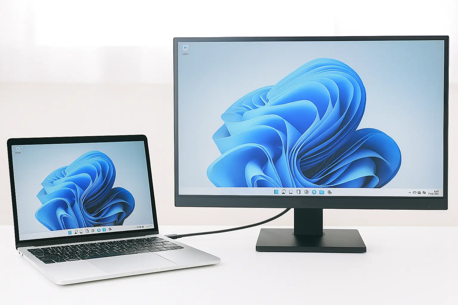 近年人気なのが、USB-C端子を備えたモニターです。ケーブル1本で映像出力とノートPCへの電力供給、さらにデータ転送まで対応するため、配線がすっきり整います。